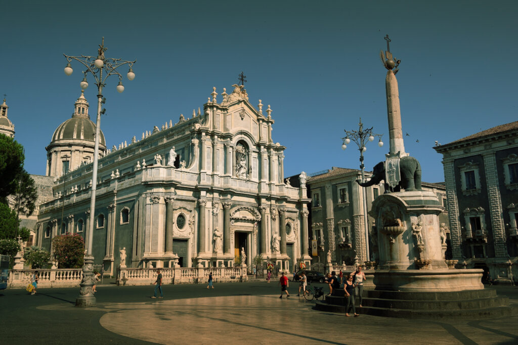 Il cuore della città di Catania, con il suo emblema rappresentativo della città, la Fontana dell’Elefante del Vaccarini.